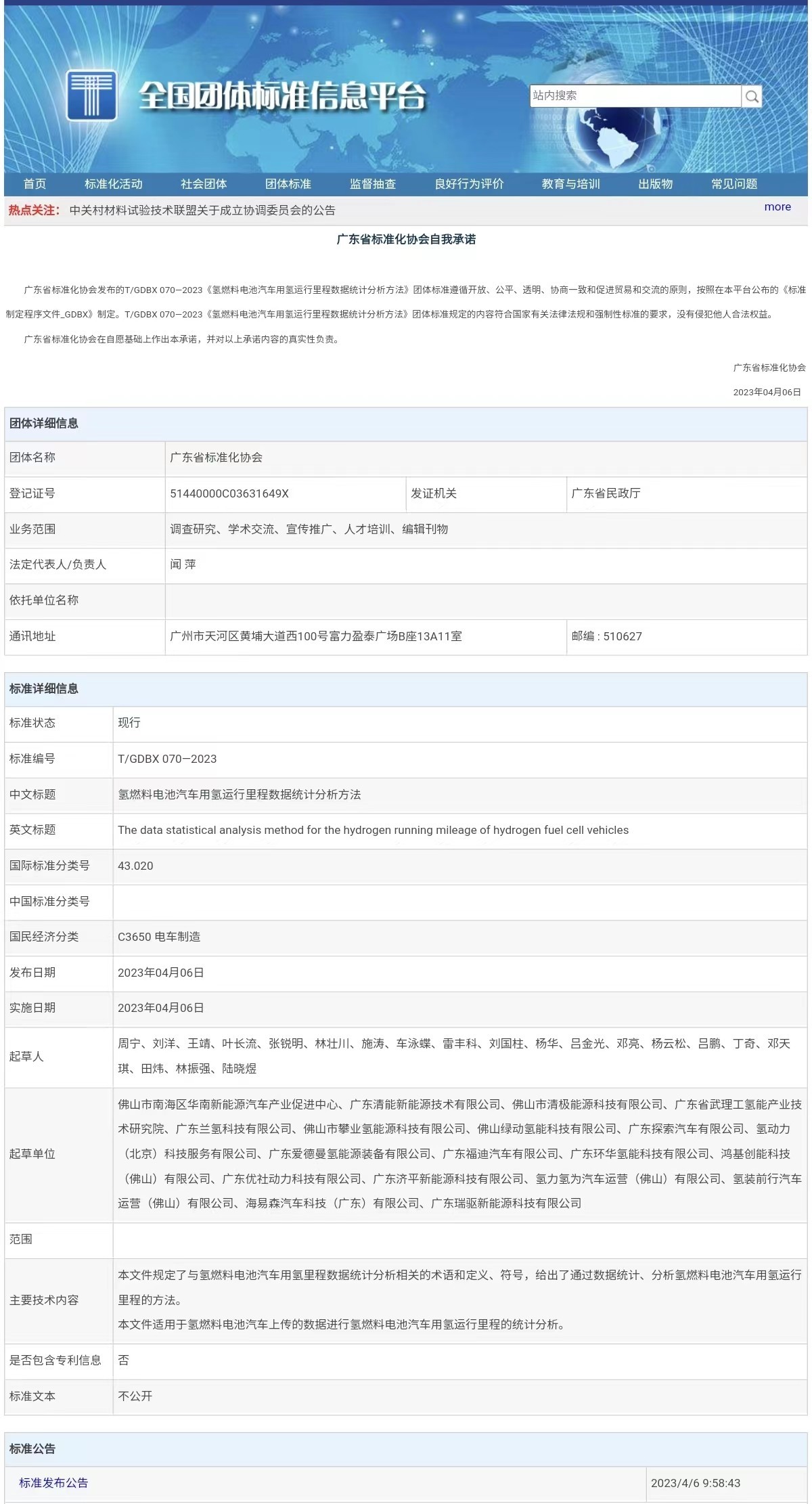 4月6日,由佛山市南海區(qū)華南新能源汽車產(chǎn)業(yè)促進(jìn)中心主導(dǎo)制定的《氫燃料電池汽車用氫運(yùn)行里程數(shù)據(jù)統(tǒng)計(jì)分析方法》(T/GDBX 070—2023)團(tuán)體標(biāo)準(zhǔn)(簡稱“標(biāo)準(zhǔn)”)正式發(fā)布!